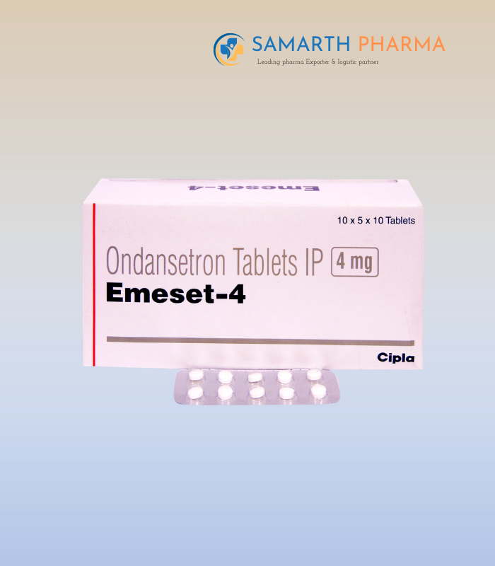 Emeset 4 tablets contain ondansetron, used to prevent nausea and vomiting caused by chemotherapy, surgery, or radiation therapy effectively.