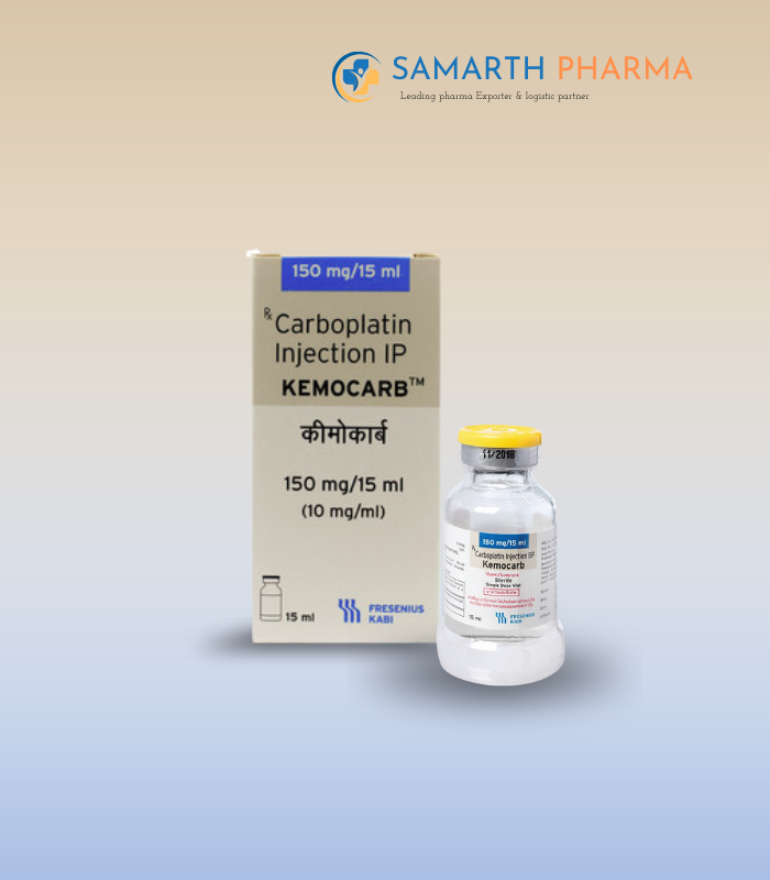 Kemocarb Carboplatin 150 Mg Injection is a chemotherapy medication used to treat various cancers by slowing tumor growth and destroying cancer cells.
